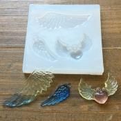 UV-LEDレジン液使用可!羽チャーム&ハートウィング・ソフトモールド・レジン製作・クレイクラフト・粘土に!