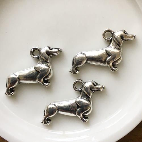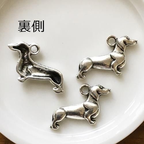 3個セット!コーギーのチャーム・両面加工・リバーシブル・アンティークゴールド犬のパーツ・イヌ・ワンコ